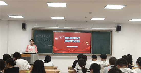 在教学楼(B)504,基础A2421班团支书向同学们讲解了烈士纪念日的历史背景与深远意义,强调缅怀革命先烈的重要性。胡雄同学表示“革命先烈们为追求理想和信念,展现出的不屈不挠、英勇奋斗的精神,至今仍然激励着我们。未来,我们要以实际行动践行革命精神,树立远大的理想和目标,勇担时代使命。”