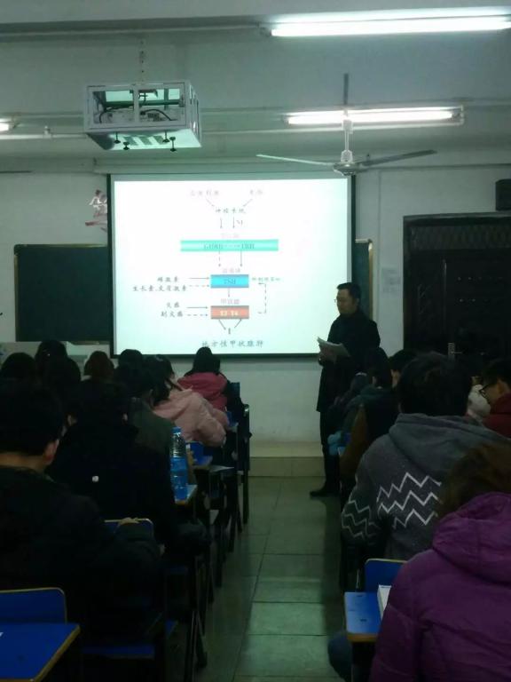 何巍副教授本次课程讲授的内容是“内分泌系统--胰腺和肾上腺的内分泌”。何巍副教授结合临床病例、图文并茂、生动形象的介绍了两种重要的腺体的生理作用及分泌调节。同学们积极踊跃发言,课堂气氛活跃。