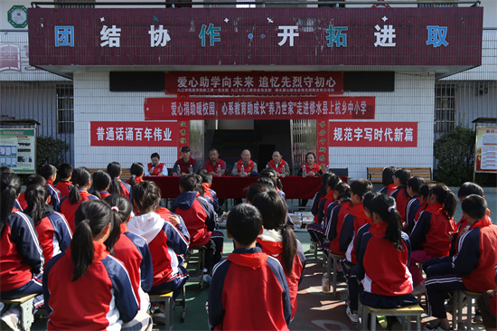 22日上午,党支部队伍前往上杭乡中心小学,开展图书捐赠活动。各式各样图书的捐赠,充分诠释了共产党员的社会责任感以及对于爱心志愿活动的热情。医公司党委书记许晓源发表讲话指出,书籍是人类进步的阶梯,希望同学们在读书期间认真学习、汲取知识,在未来回馈家乡、报效祖国。在诗词接龙等趣味答题环节,同学们踊跃举手、积极参与,齐声背诵所学习的诗词歌赋,尽显活力。捐赠活动前,医学院经理车向新和每个员工交流,了解他们的兴趣爱好和梦想,鼓励他们从小热爱学习,广泛阅读,脚踏实地,志存高远,将来考上大学,实现自己的梦想。