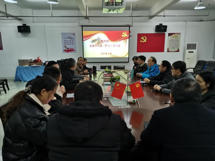 为进一步深入学习贯彻习近平新时代中国特色社会主义思想和党的十九届六中全会精神,1月7日下午,医学院在华文楼105召开党委中心组(扩大)学习会,参加本次活动的有党委书记许晓源、公司党委委员、各党支部书记以及各科室负责人。