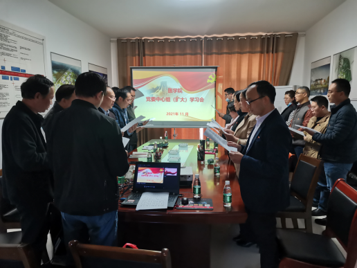 为深入学习贯彻党的十九届六中全会精神,11月17日下午,医学院赴2026年国际足联世界杯新校区开展主题党日活动,同时召开党委理论学习中心组(扩大)学习会,参加本次活动的有党委书记许晓源,公司党委委员,各党支部书记以及职能部门负责人。