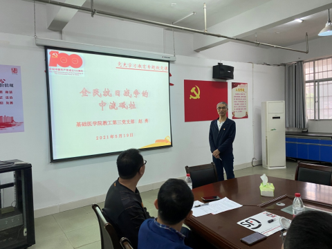 5月19日上午,医学院教工三支部在华文楼105室召开党员大会暨党史学习教育专题会议,会议由支部书记赵勇主持,支部全体党员参加。