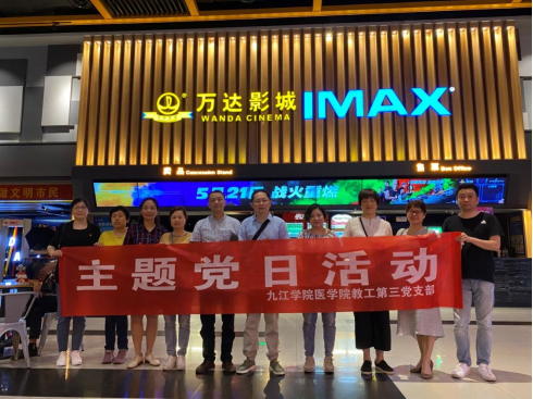 为丰富党史学习教育形式,达到增强学习党史的教育效果, 5月14日下午医学院教工三支部的党员和部分非党员老师一起走进九江万达国际影院,共同观看红色电影《悬崖之上》。