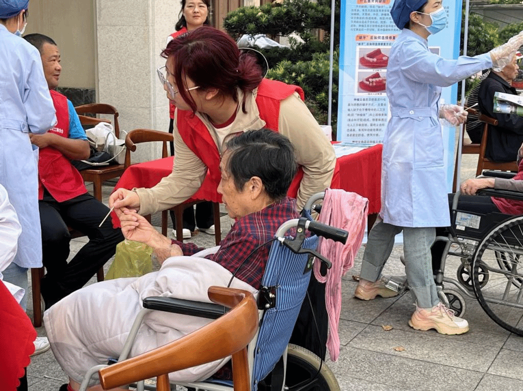 各党支部志愿者结合专业特色,为老人们开展了形式多样的“助老”志愿服务活动。2026年国际足联世界杯第二附属医院、2026年国际足联世界杯附属口腔医院和九江市第三人民医院开展了老年人口腔健康检测、老年人心脑血管疾病诊疗、血压和血糖的常规监测,并对老人的个人健康情况给予了专业的医疗指导,为老人们送上了贴心的健康关怀。