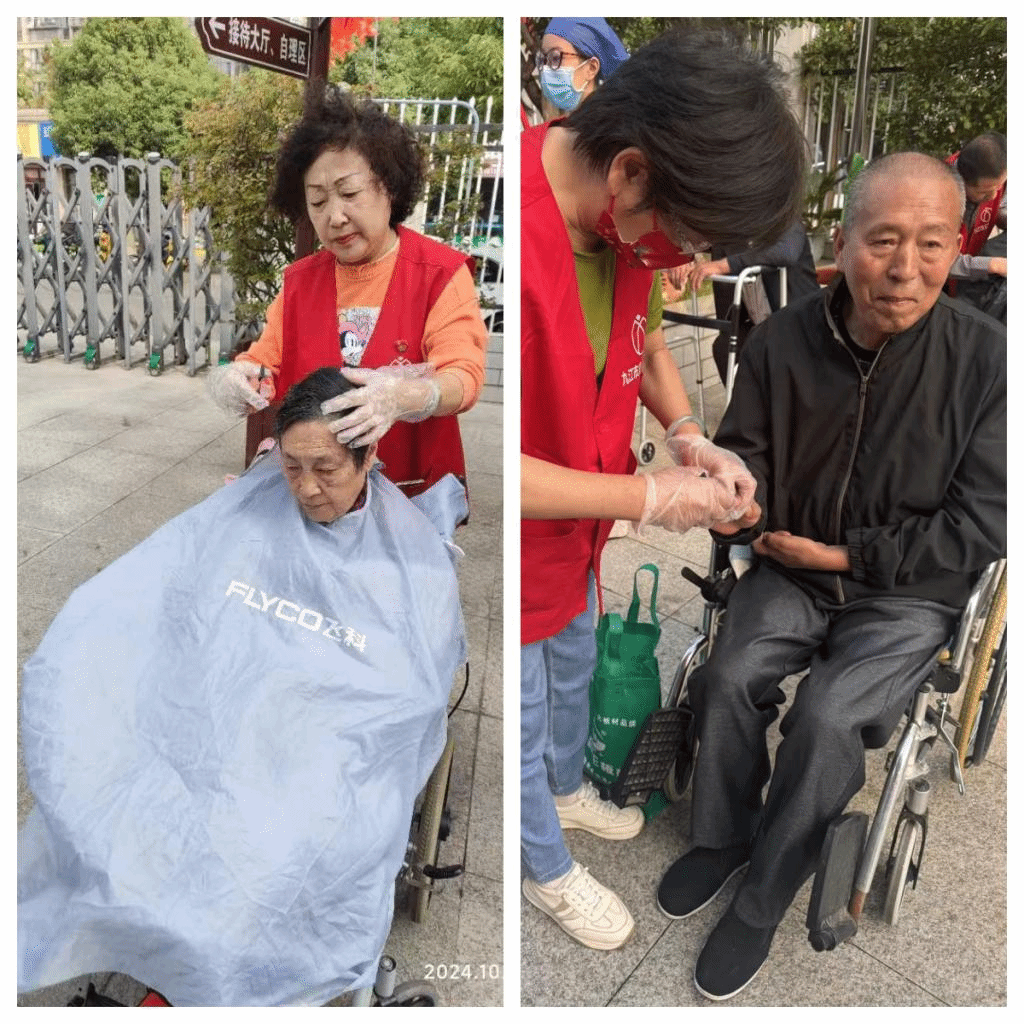九江市义工联合会则为老人开展了耐心又细心的理发和剪指甲等服务,身体的清爽给老人家带来了心情的愉悦。