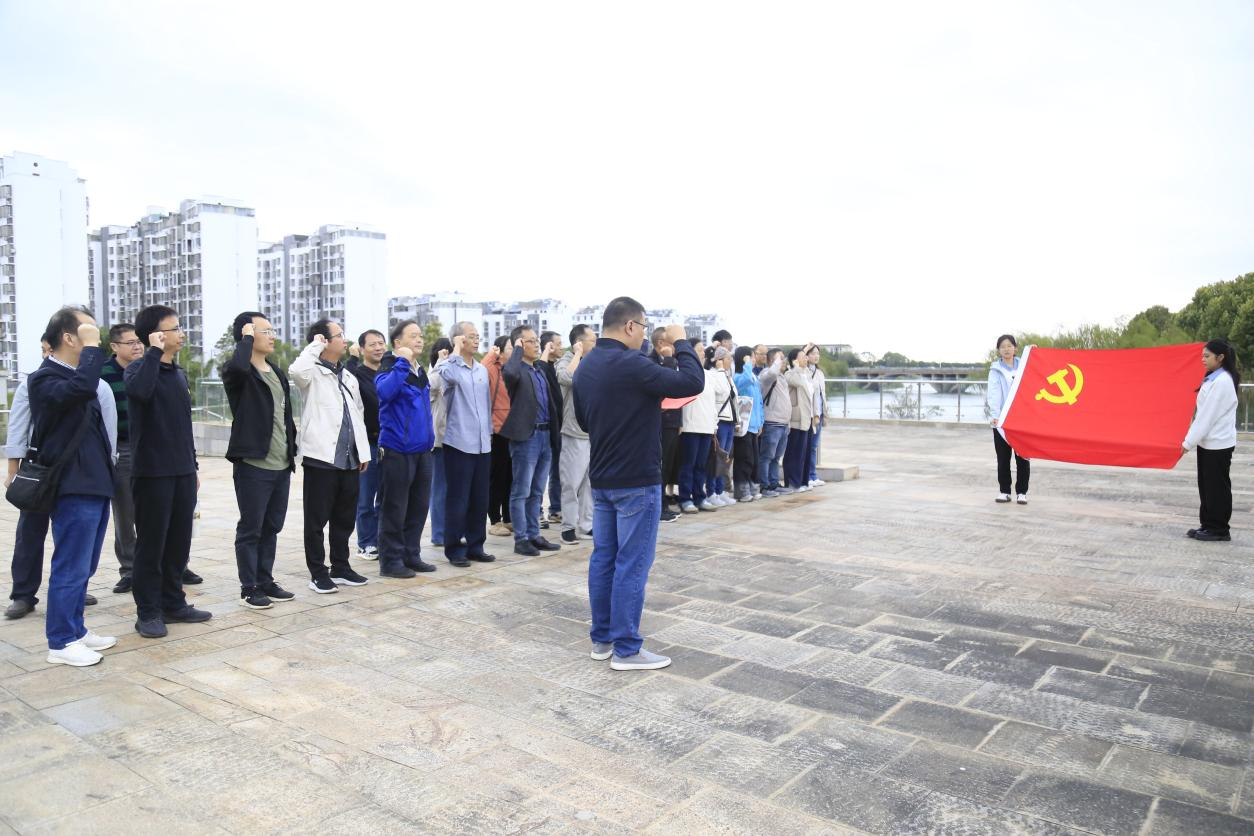 上午9点,全体人员抵达万家岭大捷纪念园。在讲解员的带领下,大家怀着无比崇敬的心情来到纪念碑前,抗战英雄们敬献花篮、默哀致敬。随后,面对鲜艳的党旗,全体党员庄严宣誓,重温入党誓词。铿锵有力的誓词,彰显着全体党员同志们不忘初心、牢记使命,对党忠诚、为党育人的坚定决心。