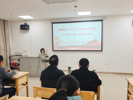 宣讲会上,李雪教授以“凝聚奋进‘十五五’新征程的磅礴力量——学习贯彻党的二十届四中全会精神”为题,围绕全会精神进行系统解读和深入阐释。她首先回顾了“十四五”时期我国经济社会发展取得的重大成就,阐释了其中蕴含的制度优势与实践经验,进一步坚定了全体教职工奋进新征程的信心与底气。随后,李雪教授围绕“十五五”时期经济社会发展的战略部署与重点任务,深入分析了未来一段时期的发展方向与目标要求。最后,她重点阐述了坚持和加强党的全面领导对于实现“十五五”规划目标的根本保障作用,强调必须广泛凝聚共识、汇聚合力,为新征程提供坚强政治引领。整场报告主题鲜明、逻辑严密,既有理论高度,又紧密结合实际,对全院教职工深刻领会、准确把握全会精神具有重要的指导意义。