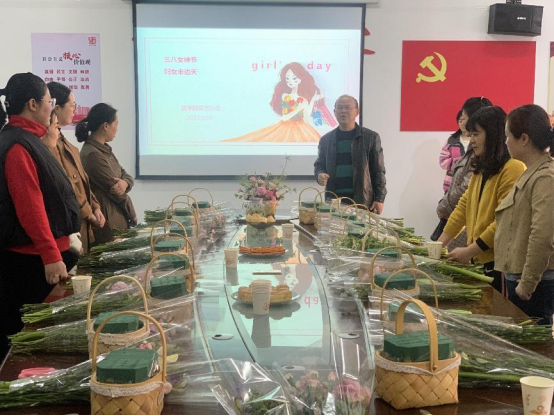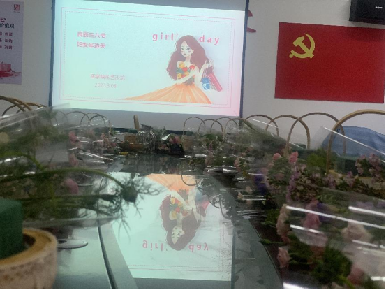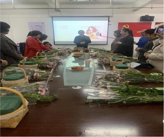 因学院场地有限,花艺沙龙分别在3月8日下午和3月9日下午分两组进行,公司党委书记许晓源和经理车向新分别到现场为女教职工送上亲切的祝福和美好的祝愿。