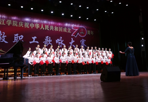 出席。来自二级学院、机关部门的26个代表队、1000多名教职工,欢聚一堂,放歌新中国,礼赞70年。