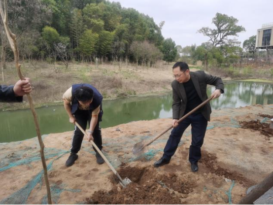 活动现场,师生们两人一组、三人一队,认真仔细地挥锹挖土、扶正树苗、培土定根,整个过程中分工有序、配合默契,植树现场呈现出一片热火朝天的劳动景象。经过师生们的辛勤劳作,一株株紫薇树迎风挺立,错落有致,焕发出勃勃生机,最后师生们还为每棵树挂上了标志牌,为这特殊意义的一天定格了时间。“紫薇树”与紫薇园校区一名相呼应,既具有绿化环境代表意义,也承载着师生们对学院未来发展的美好祝愿与期盼。
