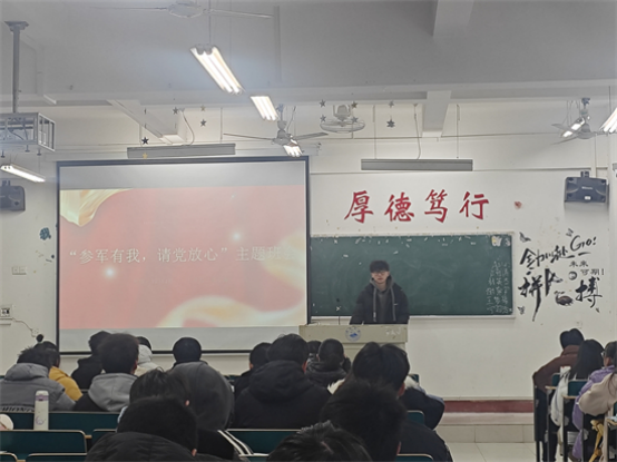 班会上,各班级通过播放宣传片和介绍征兵政策的形式,引导同学们深入了解征兵政策的内容和背景。各班班长耐心倾听同学们的疑问,并就报名流程、军队生活等问题进行详细解答,使同学们对参军入伍有了更清晰的认识。同学们积极参与,踊跃发言,展现出对国家国防建设的热情和支持。有军队经历的同学分享了他们的参军经历和成长体会,激励着同学们勇敢迈出参军的步伐。