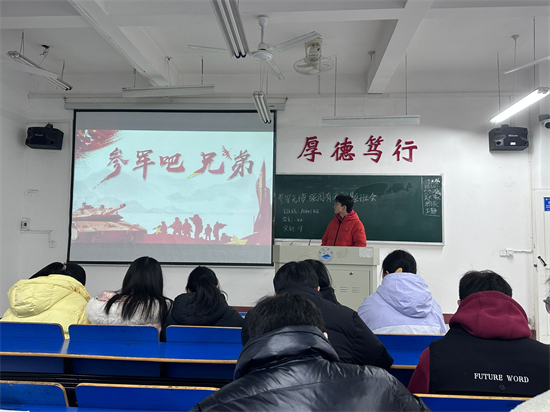 为了响应国家征兵工作的号召,加强对员工的征兵政策宣传和理解,提高员工的国防意识和责任感,医学院于12月21日组织各班级举办了2024年征兵宣传主题班会。