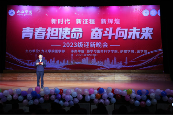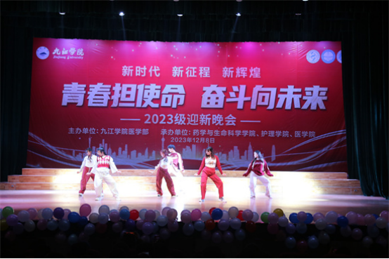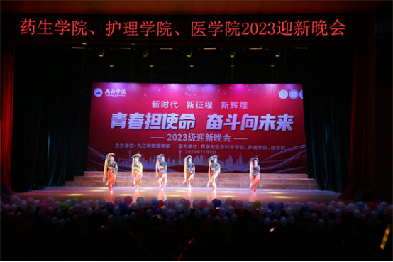 迎新晚会正式拉开序幕,首先是医学院、药学与生命科学学院、护理学院的三位领导及员工干部携手呈现的合诵《长江之歌》,在对长江的歌颂中,表达了中华儿女对神州大地的无尽热爱;医学院舞蹈队献上的《青玉案·元夕》,古风盎然,令人心醉神迷,用舞蹈的语言描绘了一个欢乐、浪漫的夜晚,仿佛穿越千年时空,重现新春佳节的盛景;声乐队带来的《医路星辰》,唱出了医者的心声和使命,歌声深情而激昂,每一个音符都充满了力量和信念;主持队表演的《彩虹节拍》,用活力四射的舞步,舞动青春;朝气蓬勃、奋发向上的精神面貌,彰显了同学们的青春风采;紧接着舞蹈队的《Dancing boom》点燃全场,整齐划一的舞蹈动作,别出心裁的创意,充满活力的舞姿诠释了医学的节奏和魅力,让在现场的观众置身于生命的律动中;晚会接近尾声,A2318班带来一曲《万疆》,经历了岁月变迁,悲喜沧桑,华夏大地仍于霞光中绽放出耀眼的光芒,脚踏着黄土地,感受着万疆胸怀,曼妙的舞姿诉说着一腔爱国之情。最后晚会在领导们与表演者的合影留念中圆满落下帷幕。