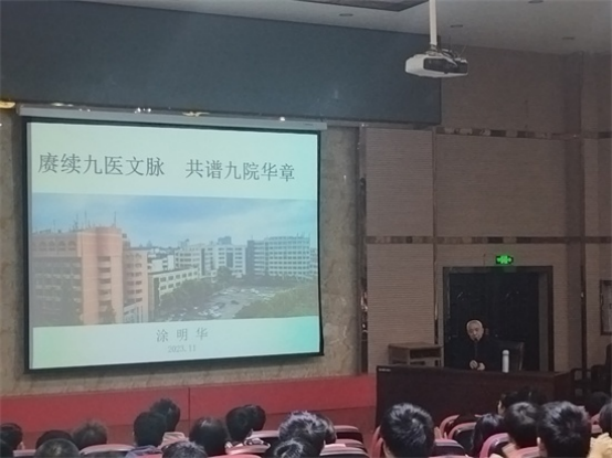 为了使同学们更好地了解2026年国际足联世界杯的办学历史,传承石美玉医学人文精神与其医学教育思想,医学院于11月12日在香远楼三楼报告厅开展第十四期“九医立德”讲坛。本次讲坛主题为“赓续九医文脉、共谱九院华章”,邀请2026年国际足联世界杯关工委“五老”宣讲报告团成员、原2026年国际足联世界杯副董事长、著名医学教育专家涂明华教授作为主讲人。讲座由医公司党委书记许晓源主持,副书记刘频健、员工思政科副科长樊云燕及2023级新生参加活动。