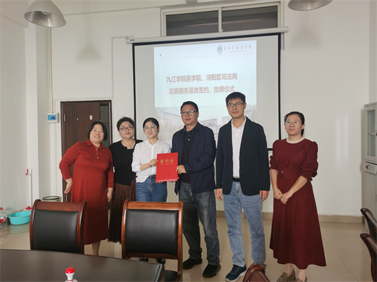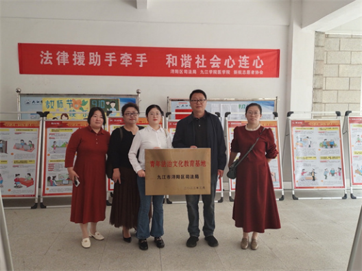 之后,医公司党委副书记刘频健与浔阳区司法局崔晨芳进行了志愿服务基地签订,并完成了“青年法治文化教育基地”授牌仪式。同时,双方就志愿服务宣传内容进行交流,并对志愿活动的常态化开展提出相关期望。
