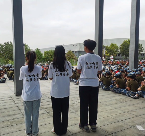 在军训科目展示环节,医学院方阵迈着刚劲有力的整齐步伐、喊着响亮的口号,精神饱满地在主席台前接受检阅,用高昂的姿态展示出我们勤学苦练的成果,展现出医学院学子医心向党,筑梦青春的风貌。