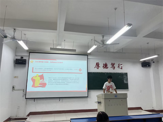 A2112班团支书在义丰楼507教室开展此次团日活动。团支书以习近平总书记重要讲话精神为主题,通过PPT讲解的方式动员全班同学要肩负起新时代党赋予的使命任务,传承弘扬优良传统,为中国式现代化建设凝聚强大的青春力量。