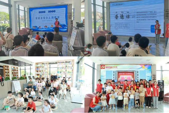 在沙河街道公园的渊明书堂,孩子们的求知若渴吸引了实践队的到来。服务队通过多媒体,在和小朋友互动中,向大家宣传了防溺水安全知识;以提问、绕口令、朗诵诗歌等寓教于乐的方式向小朋友们推广普通话,强调讲好普通话的重要性。孩子们与队员们一同在欢声笑语中感受学习思想文化带来的喜悦感与充足感。
