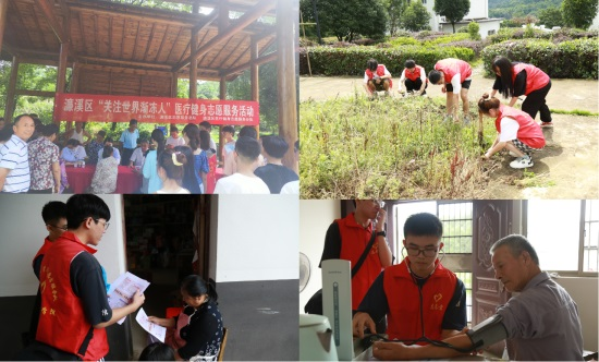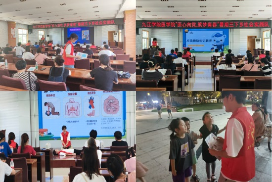 在积余村,实践队依托所学专业知识,通过走村入户的形式,为村民们发放健康宣传单,并详细讲解心肺复苏、海姆利克急救法的规范操作方法;通过调研问卷的形式向村民普及如何预防病毒性肝炎和甲流等知识;联合濂溪区卫健委开展医疗健身志愿服务活动,为村民们测量血压、血糖及血氧等。同时,实践队还在村森林公园开展了除草,捡拾垃圾等维护公共卫生环境活动。实践队为乡村送健康送卫生,助力共建美丽乡村。