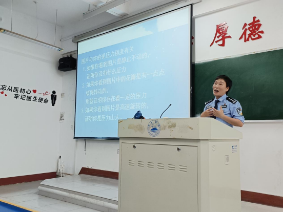 为进一步提高老员工的心理素质,促进老员工的身心健康和谐,宣传普及心理健康知识,深入开展心理健康教育。医学院结合学院特点,在积极组织5.25心理健康活动月活动的同时,于5月17日晚在义丰楼402教室,开展了第十三期“九医立德讲坛”活动。本次讲坛邀请九江市公安局一级警长、国家二级心理咨询师叶保珍为员工进行心理健康讲座,讲座由医公司党委书记许晓源主持,各班级寝室心理联络员和员工代表聆听了宣讲。