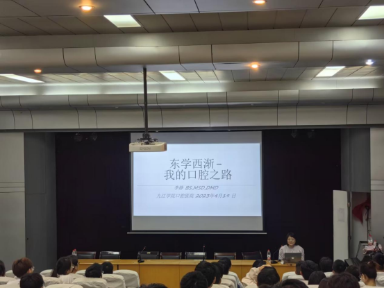 为更好引导和帮助口腔医学专业员工对本专业能有更深层次的了解和认识,提高员工对未来职业发展的规划能力,4月19日晚,医学院邀请美国波士顿大学牙科博士李静于浔东校区立本楼三楼报告厅举办《东学西渐—我的口腔专业之路》专题讲座。参加本次讲座的人有医公司党委书记许晓源、附属口腔医院副经理李小慧和九十余名口腔医学专业员工。
