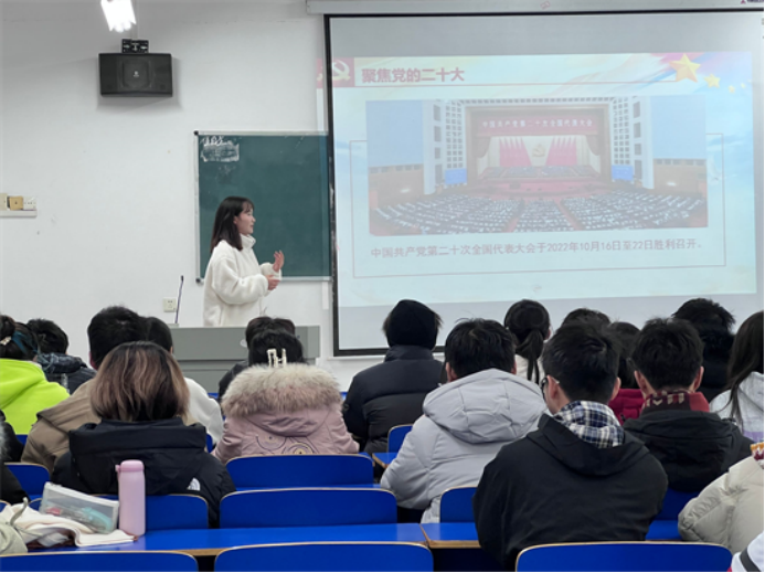 党的二十大知识宣讲活动中,王鑫、王睿哲和申研分别向同学们介绍了党的二十大的重要意义来引出本次宣讲的主要内容;向大家进一步讲解了新时代十年伟大变革和历史成就,并放映了重大事件的相关图片和视频;还向同学们分析了当今中国如何开辟马克思主义中国化时代新境界;最后,向同学们介绍了新时代新征程中国共产党的使命任务,并且向在座的各位同学们提出了新时代老员工的时代要求,践行新时代老员工的使命和担当,从我做起,从身边的小事做起。宣讲过程中,三位宣讲人分别向同学们详细的介绍党的二十大相关知识,并与同学们相互交流,同时对同学们提出的问题进行答疑解惑。活动结束后,大家纷纷表示对党的二十大精神有了更为深刻的认识和理解,同时也更加明确了自己所肩负的历史使命,立志为实现中华民族伟大复兴的中国梦贡献自己的一份力量,做一个坚定不移听党话、跟党走的时代好青年。