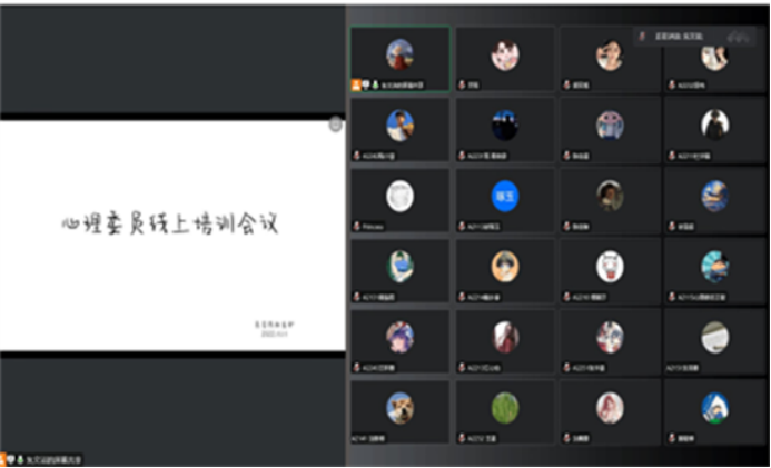 为了更好的帮助心理委员提高工作责任心,学习相关心理健康知识,提升处理问题的能力,更好地为同学们做好服务,11月14日,员工会权益部积极组织大一、大二心理委员开展心理健康知识线上培训。