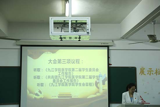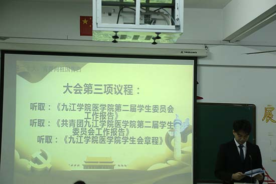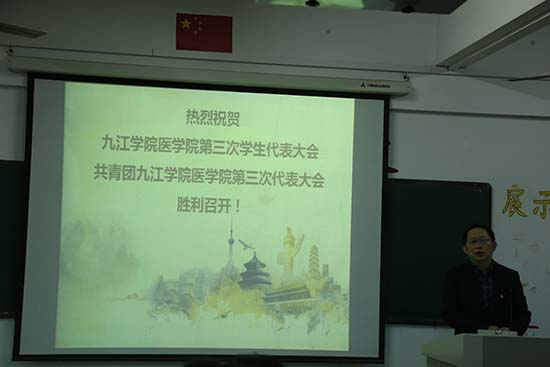 许晓源老师在致辞中对大会的召开表示了衷心的祝贺。之后他为大家上了一堂生动的微思政课,讲到大家要深入学习习近平总书记重要讲话精神,牢记习近平总书记对青年人的寄语,成长为有理想、敢担当、能吃苦、肯奋斗的新时代好青年;并通过两幅对联表达了对九医学子的殷切期望:“白鹿千年孕山江湖奇秀 九院廿载育百千万英才”、“守初心担使命九医心向党 向未来正青春建功新时代”。