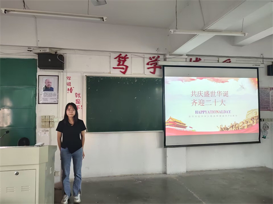 在华文楼阶梯二教室,A2132班团支书以PPT的形式向同学们讲述了建国以来中国发生的巨大变化和伟大成就,随后同学们积极讨论该以何种形式来表达自己对祖国的热爱之情。最后团日活动在同学们嘹亮的团歌声中落下帷幕。