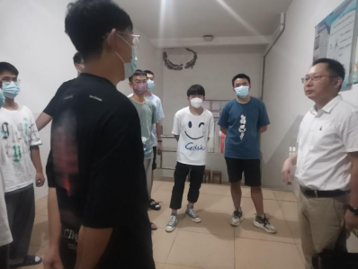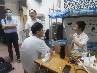 党委书记许晓源和党委副书记刘频健在寝室关心地询问大家是否适应新的环境,有没有其他困难;大家有什么困难尽管提出来,学院会尽力帮助大家解决;并嘱咐大家出行一定要注意安全。