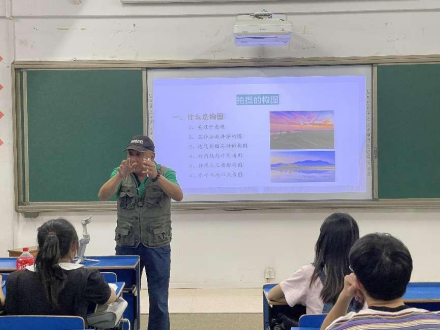 活动伊始,江洪涛首先向同学们介绍了视频的起源以及发展特质,并由此延伸到短视频时代的特征,江洪涛结合自身的摄影作品向同学们讲授短视频要有高质量、生活化、有内容三大特征。之后江洪涛向同学们讲解了怎样拍好“红色走读”短视频,首先要确立主题,给视频定调,其次是要对素材进行整理及后期处理,要仔细研究分析脚本,审看所有素材,甄选合适的镜头,进行大致粗剪,再精心调整画面,进行精剪,最后配上字幕、背景音乐等发布出来。