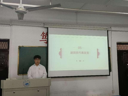 全体成员在团委员工第一副书记沙雪璐的带领下宣读了入团誓词。举起右手,体现了宣誓者的决心和信心。大声宣誓,展现了宣誓者们入团的坚定与自豪。誓言如山,铿锵有力。新团员代表潜朋讲到:“团员应以身作则,在同学们面前起到表率作用;勇当先锋、积极奉献,发挥主力军和突击队的作用。”接着由老团员代表杨静同学发言。她认为:“作为一个团员,不只是同学们的先进代表,不只是参加团活动,更不只是代表你一个人。因为在每一个团员身上,都肩负着为团组织做贡献的神圣义务。”之后她还分享了习近平总书记庆祝建团100周年重要讲话精神心得体会。