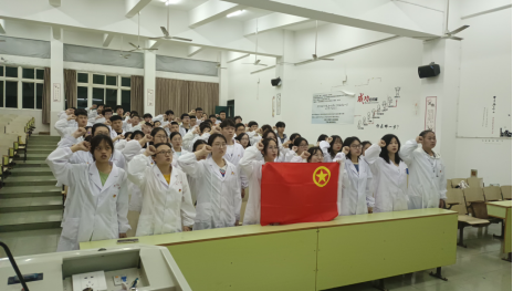 在宣誓中坚定理想信念:5月4日,医学院组织员工积极开展了入团宣誓和医员工宣誓活动。在入团誓词中重温青年团员为共产主义事业奋斗的责任使命,在医员工誓言中感悟守护人民健康的初心使命,激励着青年医者始终要坚定理想信念,医心向党,建工新时代。