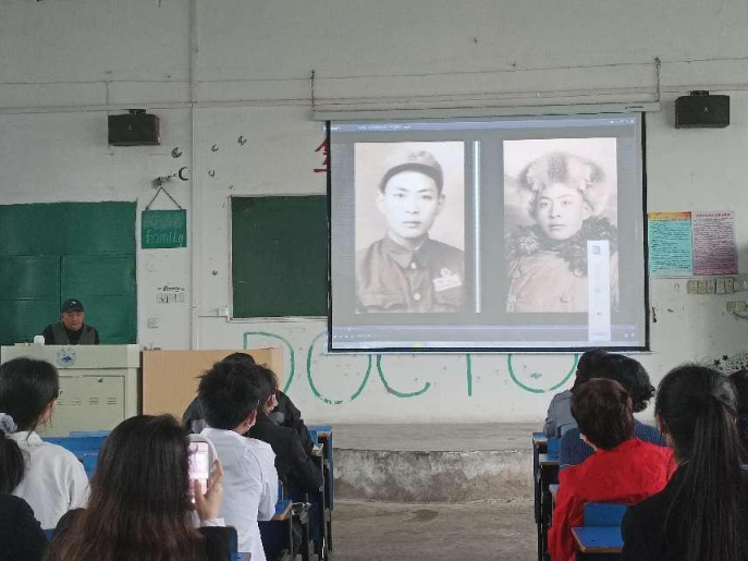 紧接着,江洪涛同志为大家讲述了他的父亲,革命老战士江琳的故事——《峥嵘岁月为党旗添彩》,并观看相关影相资料。听完江琳老战士的故事,同学们都感受倍深。樊江海说到:“看完江老爷爷的一生,我感触颇深。他作为一名战士,又是一名医护工作者,在如此艰难的环境下,为人民奉献了一生。去年有幸拜访江爷爷,他跟我们讲述了很多他年轻时的经历。听到老爷爷去世,我很难受,只能更好继承他老人家对我们的期盼,好好努力学习,励志报效祖国。”童建辉谈到:“我去看望江爷爷的时候,让我印象很深刻的就是他虽然年事已高,但是在讲述他年轻时候的事迹时,他的眼睛里闪烁着光芒。我是退伍回来的员工,能体会到他当年的不易,也很敬佩他在那么小的年纪就做了那么多了不起的事。我希望自己能努力奋斗,以后成为一个和他一样谈起自己年轻时候的事时眼睛里闪烁着光芒的人”
