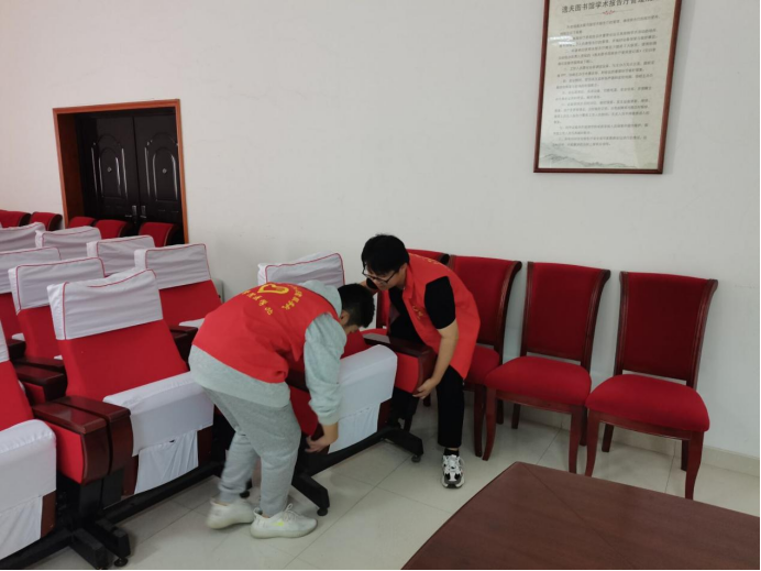 大会结束后,参会人员有序离场。在嘉宾全部离场之后,由方红梅带领医学院志愿者们打扫会场。