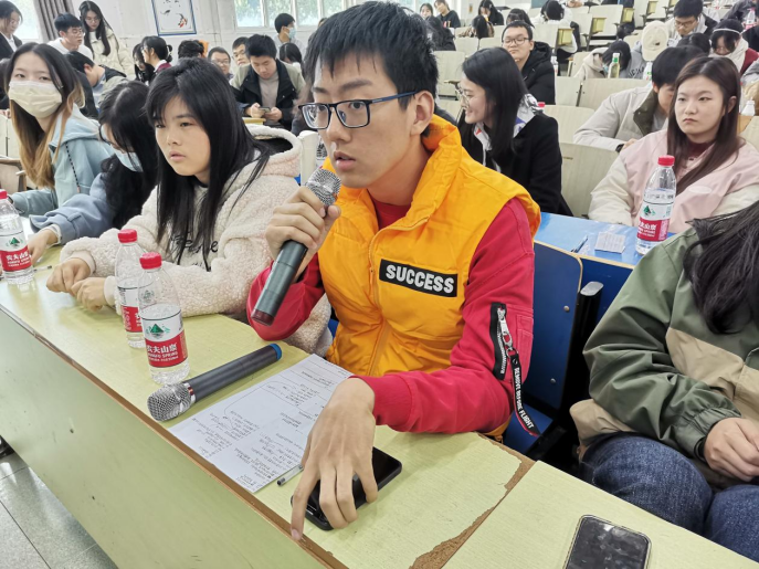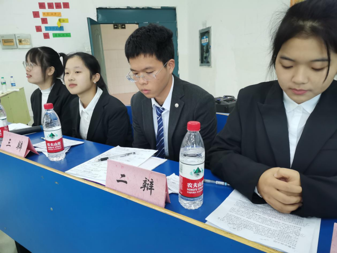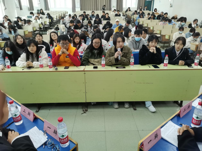 比赛前5分钟,辩论选手和评委都已做好准备,观众也陆续就坐。2:30比赛正式开始。首先,主持人热烈欢迎了评委和观众的到来,宣读了此次辩论赛的规则。紧接着,在主持人一声“开始”后,来自A2115班的正方和来自A2132班的反方一辩各做限时为两分钟的陈词。正方简明严谨的阐述了“灾难中的自私应该受到谴责”的观点,反方直接清晰的点明了“灾难中的自私不应该受到谴责”的己方观点。接下来,迎来了激烈的攻辩环节,双方选手据理力争,运用扎实的知识和充分的准备,一针见血提出各自的反驳观点。