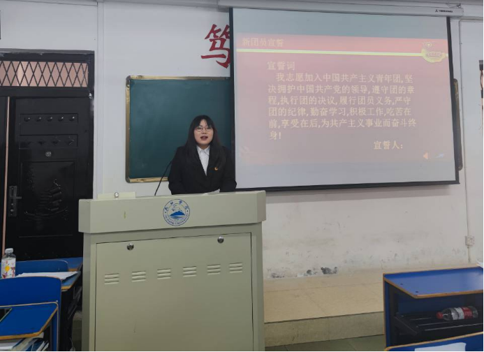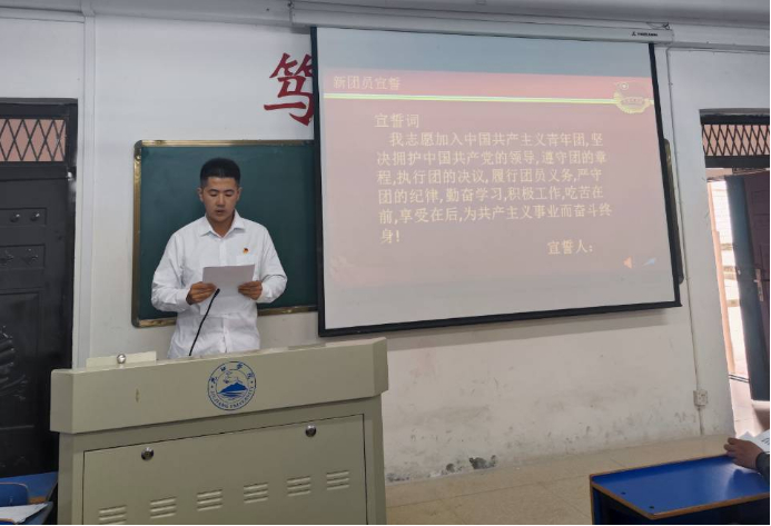 沙雪璐同学带领大家宣读了入团誓词,希望新老团员能牢记团员誓言,增强为共产主义事业奋斗的信念。新团员们的坚定的眼神,震天的宣誓,也感染着所有人,让大家更加感到使命感和责任感。新老团员们都在传递着青春的正能量,用自身行动实践着社会主义核心价值观。