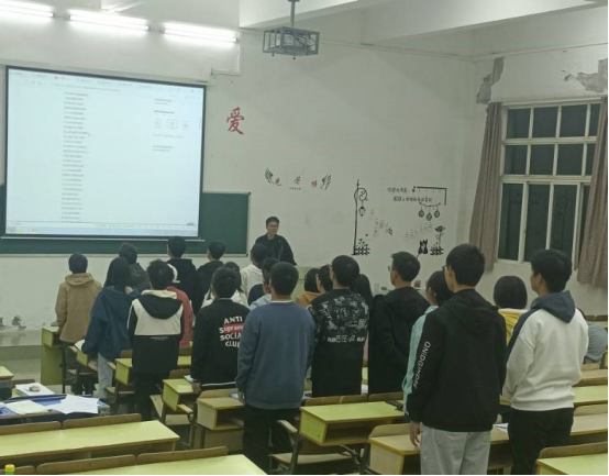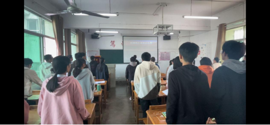 A2132班团支书就最近展开为期四天的十九届六中全会进行了系统性的学习,并且对会议内容做一次总结。活动开始之前,全体起立唱红歌。接着,团支书以ppt放映的形式向同学们展示了此次十九届六中全会会议的主要内容,并倡导全体同学积极落实会议精神。