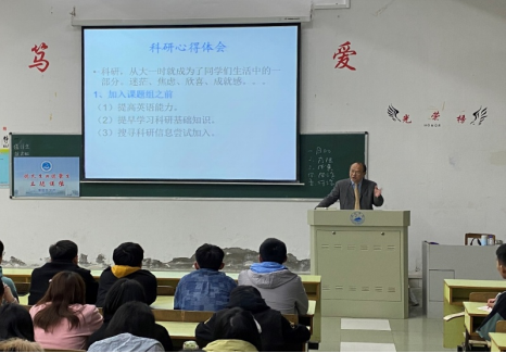 讲座中车向新以九医精神—院训“笃学 博爱”勉励预防学子,以自己的科研课题点燃同学们的科研激情,结合自身学习和教学经验为同学们提供学习思路,并对同学们作出要求,希望大家提高英语能力、提早学习科研基础知识、积极搜寻科研信息并尝试加入。