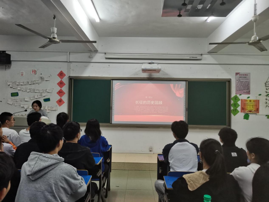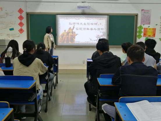 10月29日,A2013班团支书邹琦同学用PPT阐述了长征是中国共产党领导人民英勇革命的壮丽史诗,是每个人需要传承的革命精神。其中,陶琪琪同学感悟到:“百年恰是风华正茂,未来仍需风雨兼程,我们要以史为鉴,开创未来,坚持和发展中国特色社会主义,实现中华民族伟大复兴”。