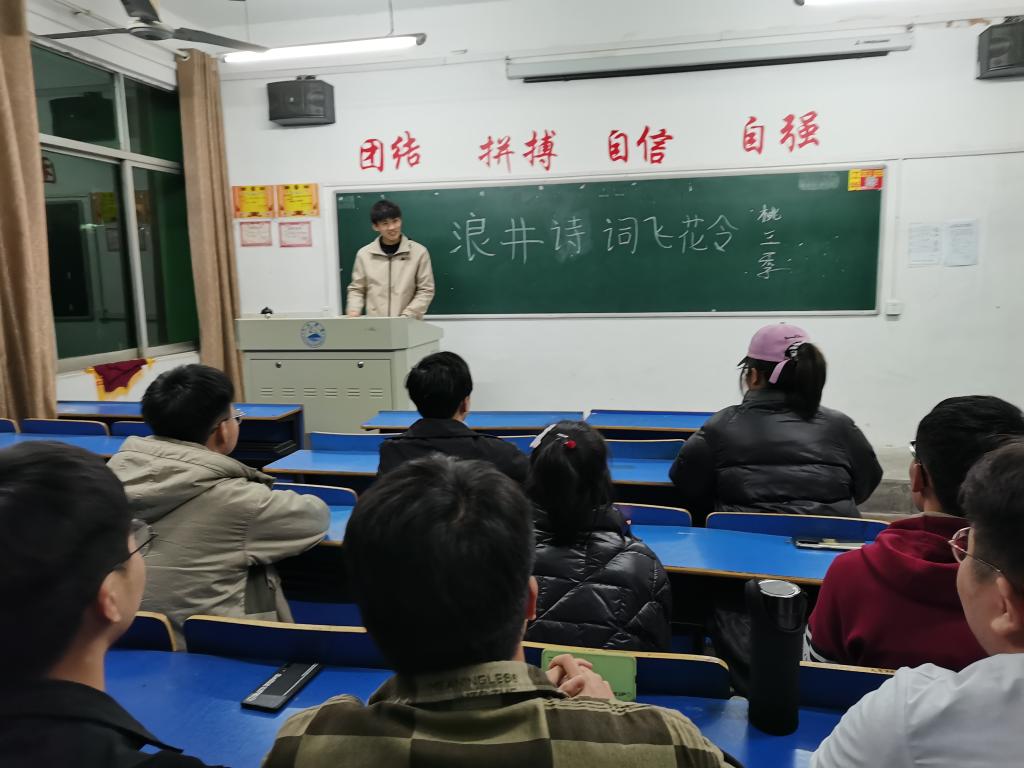 浪井社员动员同学们积极参加活动并进行下班宣传,让同学们明白本次活动的意义,鼓励同学们勇敢展现自己的才能。活动伊始,在主持人的引导下,激动人心的“诗词飞花令”活动正式开始。首先主持人给出关键字,随后社员们争先举手回答,互对诗词,你来我往,精彩纷呈。经过一个多小时的激烈角逐,终于决出各项奖项的最终得主。欢乐的时光总是短暂,大家的热情却难以消减,活动最后,社长为各奖项得主一一颁奖、合影留念,并鼓励大家继续保持对诗词的热情,不忘入社初心。