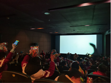 孩子们带好口罩有序进入影院入座,电影开始前,志愿者们分发提前为孩子们准备好的橘子、奶茶饮料。本次电影观看的是《新神榜·哪吒重生》,观影过程中,聋哑儿童们和青年志愿者都沉浸在精彩的情境中。除了纯粹的视觉享受外,“哪吒”也同时暗喻着:不能像命运低头,努力活出价值,这个世界属于我们!