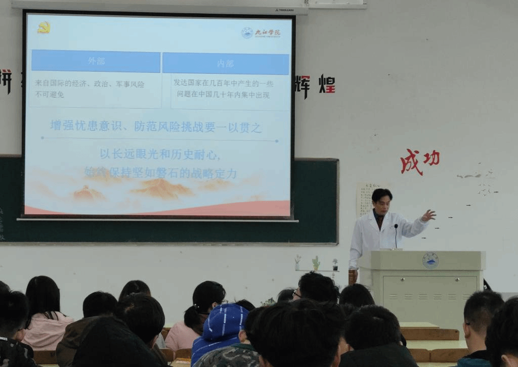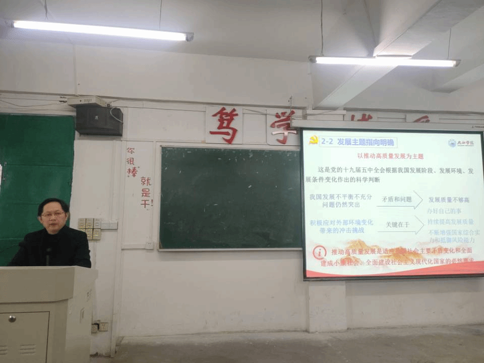 课堂以中国整个历程作为开篇,将历程分为回顾过去、立足当今、放眼未来三个板块来进行论述。许晓源对同学们进行了关于2035年中国发展和自身发展的提问,鼓励同学们勇担时代重任,绽放青春年华。此外还对党的十九届五中全会进行解读,表示国家将以长远眼光和历史耐心始终保持坚如磐石的战略定力。