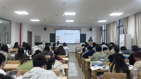 在教学楼(一)B303,基础A2411班团支书通过PPT讲解和互动问答的方式,带领同学们学习火灾的成因、预防和应对策略。刘雅思同学指出:“火灾往往源于我们的疏忽,通过这次学习,我掌握了许多实用的防火技巧,例如如何安全使用电器、如何妥善管理易燃物品等,这些都是我们日常生活中防范火灾的基本措施。”