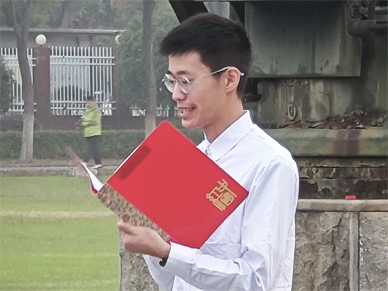 临床医学院A2317班陆文同学以“七十五载风云路,我们都是追梦人”为主题进行了国旗下讲话。他回顾新中国成立75年来的历程,提出新中国从成立到如今取得的伟大成就,都离不开追梦人的拼搏。陆文还引用习近平总书记对青年的寄语“未来属于青年,希望寄予青年”,鼓励各位同学要勇挑重担,为民族复兴贡献力量,不负时代所托。