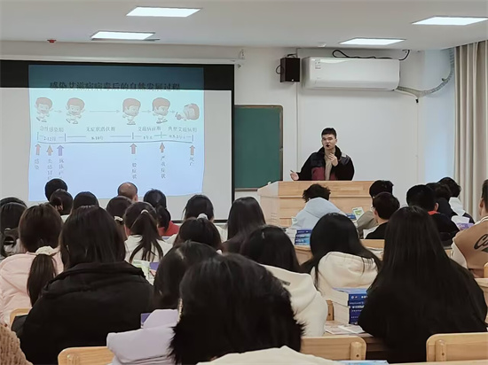 讲座伊始,张运建首先讲解了艾滋病的基本知识,传播途径、症状及预防方法,一些常见的误区。他通过具体案例,深入地阐释了艾滋病对个人和社会的影响,并强调了早期检测和治疗的重要性。同学们认真聆听,对艾滋病有了更加深入的认识。