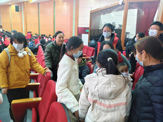 清晨,志愿者们满怀爱意早早抵达九江市图书馆。大家迅速展开准备工作,搬运爱心物资物,牛奶、书包及各学习用具等。每一件物品都代表着志愿者们的一份温暖和爱心。之后,志愿者们又迅速分工,分别值守在图书馆的各个地方。一部分志愿者热情又耐心地指引受助方和义工们前往活动报告厅及落座位置;一部分志愿者为行动不便的老人和携带小孩的家庭提供帮助,搀扶着他们安全到达目的地;在活动报告厅内,另一部分志愿者陪小朋友聊天,用温柔的话语和亲切的笑容与他们拉近距离。