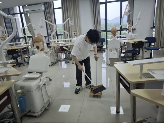 活动当日,参与志愿服务的同学们准时到达指定地点,在领取清洁工具后,迅速投身于清洁工作之中。负责拖地的同学细致入微,确保每一寸地面都洁净光亮;负责擦桌子的同学则对实验台面、仪器设备表面等区域进行全方位、无死角的擦拭,力求桌面一尘不染,仪器整洁如新。整个清洁过程中,同学们分工协作、默契配合,充分发扬了志愿者不怕苦、不怕累的奉献精神。经过多次卫生清扫,医创中心七楼、八楼实验室卫生整洁有序,为科研工作的顺利进行提供了有力保障。