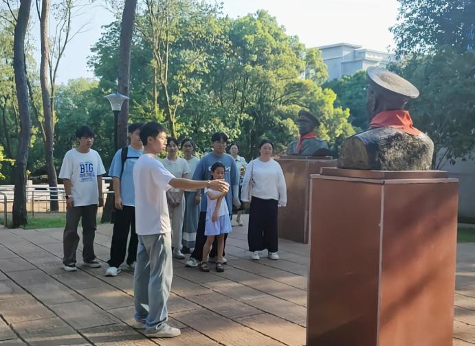 7月4日,实践队前往文天祥纪念馆和将军公园进行红色学习教育活动。在文天祥纪念馆,队员们通过参观文天祥生平事迹展览、聆听讲解员讲述文天祥的抗元斗争事迹及其所表现出的民族气节和爱国精神,深刻体会到“人生自古谁无死,留取丹心照汗青”的壮志豪情。在将军公园,队员们瞻仰了开国将军们的雕像和纪念碑,他们的历史革命事迹无不述说着他们在抗战期间为国为人民做出的巨大贡献和革命精神。从庐陵忠义到抗战烽火,从井冈星火到将军丰碑,实践队更深刻体会到了中华民族的精神血脉始终奔涌着同一个信念,团结一心、共克时艰,方能在时代浪潮中挺立不倒。