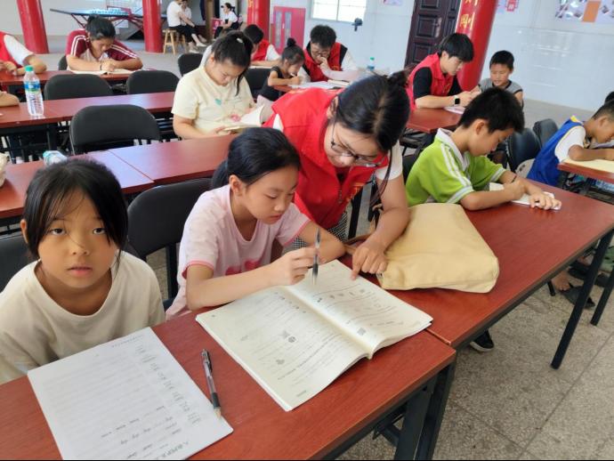 6月30日-7月4日,在瑶前村新时代文明实践站,实践队成立专项志愿服务队,开展了系列主题支教活动。针对不同孩子的需要,服务队详细制定每日教学计划,依据孩子年级特点进行分组专项辅导,精准对接学习需求。对于幼升小的孩子,队员们从最基础的字母表教起,帮助他们做好升学的识字准备;针对二三年级的孩子,队员们着重纠正他们的握笔姿势和坐姿,通过规范的字帖练习,培养良好的书写习惯;而对于高年级员工,则着重辅导他们的暑期作业,指导他们学习背诵下学期的古诗词,共同解决各项作业的疑难问题。在活动过程中,实践队还加入了红色教育、安全教育、物理实验、职业启蒙情景演绎等互动性较强的科普活动。在寓教于乐的学习中,孩子们不仅巩固了基础文化课,也跟随老员工们深入探索了更广泛的世界。